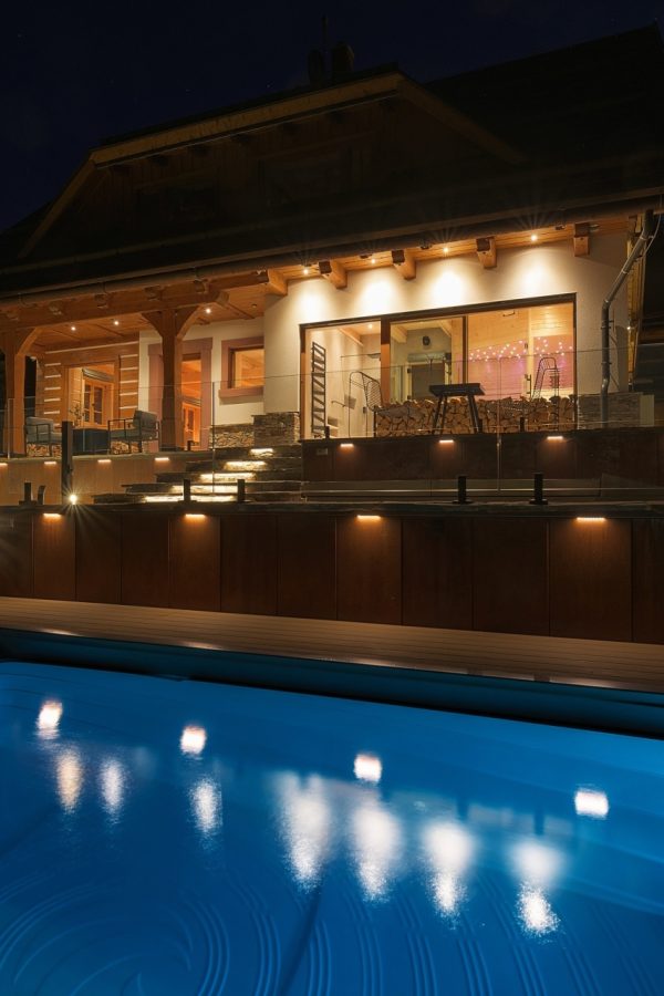 The Log Home consists of a modern chalet with a capacity of 12 people (8 beds and 4 extra beds) and an apartment with an additional 3 beds. In total, it can accommodate up to 15 people. The property is solely rented as a single unit (chalet + apartment).